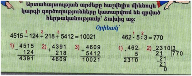 Բազմապատկումն ու բաժանումը ավելի բարձր կարգի գործողություններ են համարվում, քան գումարումն ու հանումը։